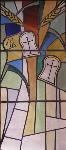 Bread of Life — Heads of wheat, three small scythes for harvesting, and a loaf of bread opened for eating signify that our Lord Jesus is the very bread of life and that we need Him when the final harvest of man's life takes place.